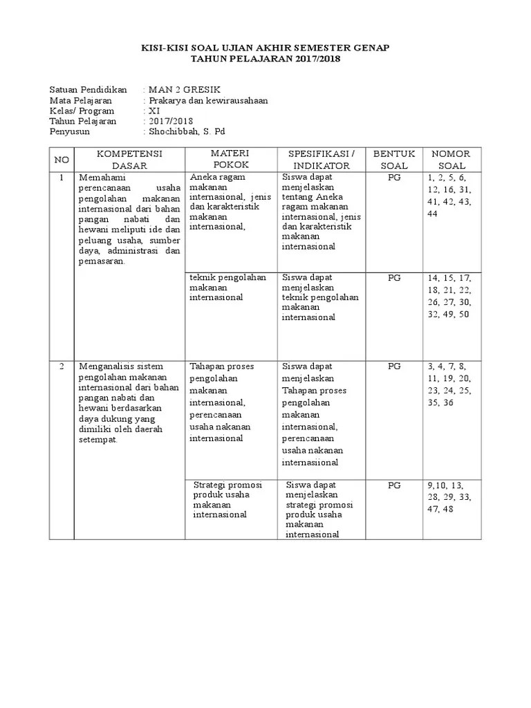 Kisi-Kisi Soal Prakarya Kelas 10 Semester 1 / Pdf Kisi Kisi Soal Tes Hasil Belajar Mata Pelajaran Prakarya Kelas Semester Vii Ganjil Kaka Nakmofa Academia Edu : Mata pelajaran pai dan budi pekerti kelas 9.